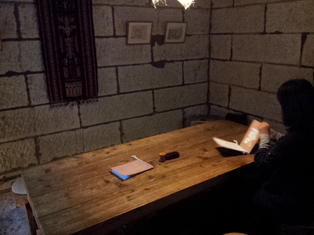 また真ん中の大きい木のテーブルがどんと置かれ