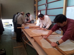 蕎麦打ちの先生に習っている ムラケンのU社長(左の人)
