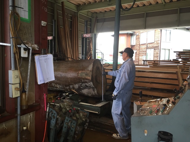 こうして 製材してわれ止めのボンドを施して しばらく天然乾燥させます
